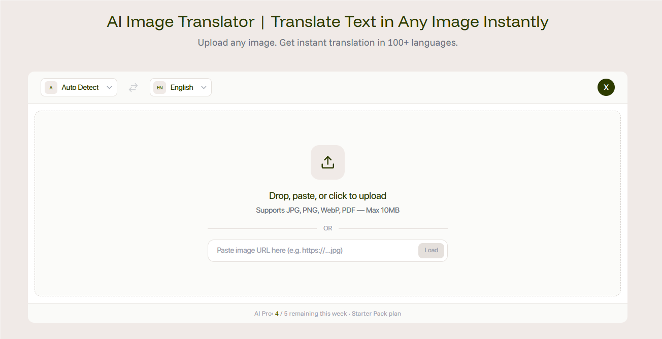 این ابزار سریع، دقیق و کاملاً رایگان برای استفاده است - بدون ثبت نام، بدون دانلود، بدون هزینههای پنهان. این برنامه روی هر دستگاهی که مرورگر داشته باشد کار میکند، از بیش از ۱۰۰ زبان پشتیبانی میکند و کیفیت و طرحبندی اصلی تصویر را حفظ میکند.